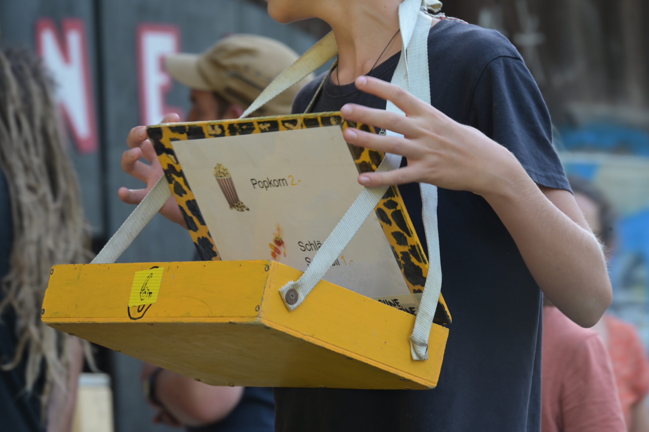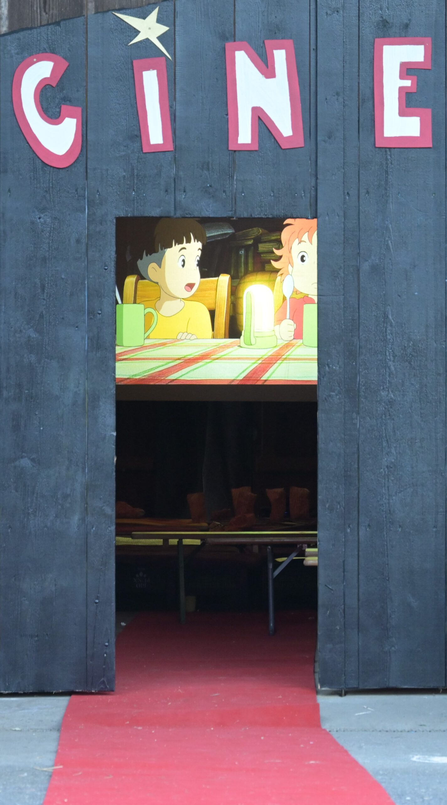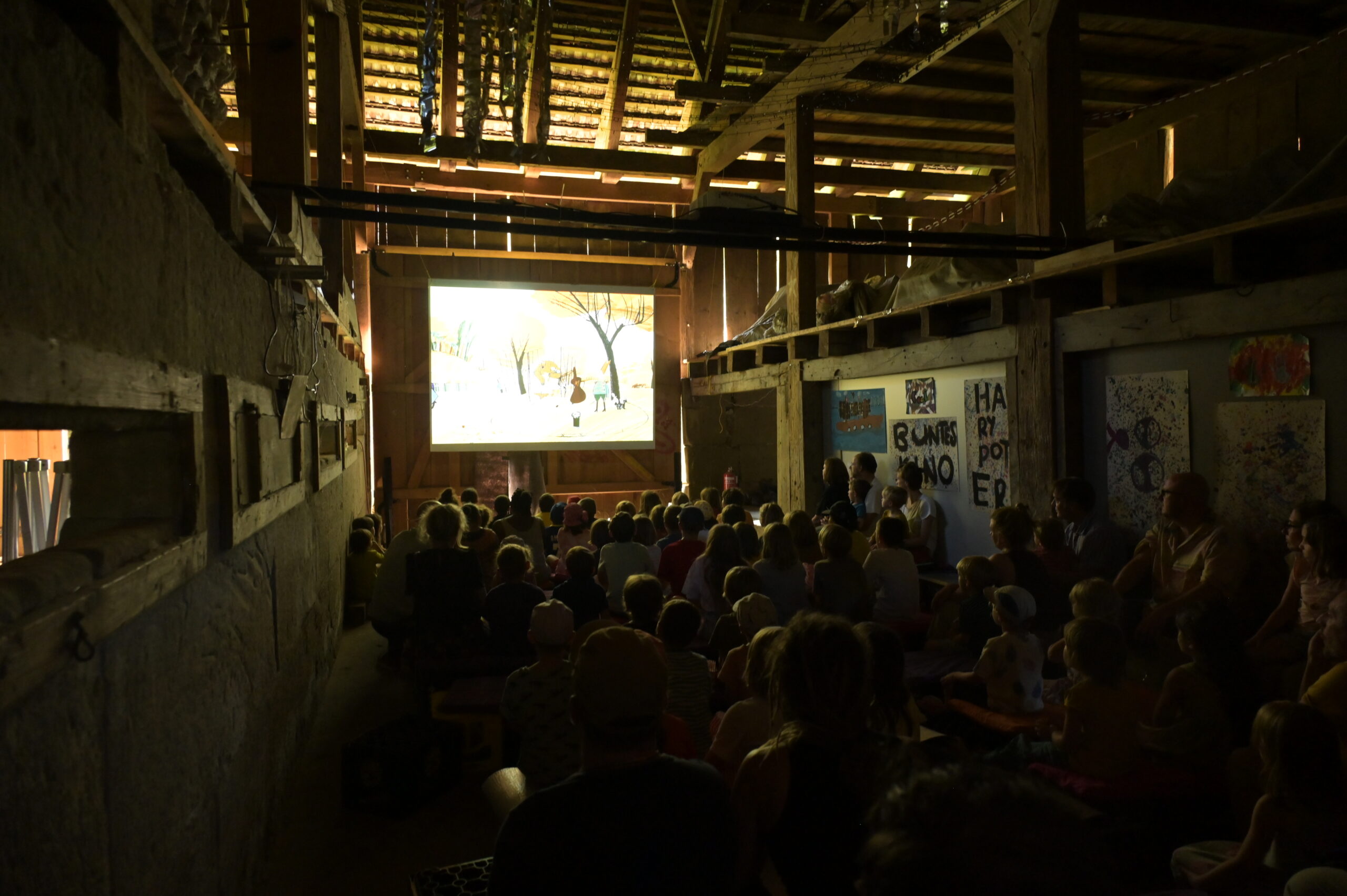 In einer umgebauten Scheune organisierte der Verein Spielrevier aus Bern ein einzigartiges Kinoerlebnis. Um das klassische Kinofeeling zu erzeugen, gab es Popcorn, selbstgemachten Ice Tea, Hot Dogs und weitere Leckereien. Holzbrettspiele, Tögglikasten, Fahrzeuge und Strassenkreide luden Kinder und Erwachsene dazu ein, miteinander zu spielen und ins Gespräch zu kommen. Tische und Bänke boten die Gelegenheit, sich vor, während und nach den Filmen in gemütlicher Atmosphäre zu unterhalten.
